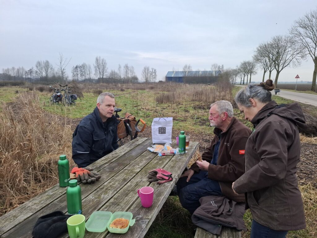 Beste knotters, “ Bouwen aan een groene toekomst.”In de maanden januari en februari is er door ruim tien vrijwilligers gegraven en gepoot in de singel parallel aan de Laarstraat. Met inlands pootgoed -door gemeente Duiven beschikbaar gesteld- hebben we ingeboet en de singel verbreed en gevarieerder